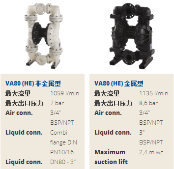 弗爾德旗下Verderair氣動(dòng)雙隔膜泵品質(zhì)優(yōu)異、性能卓越,在各種應(yīng)用場合中均能平穩(wěn)、安全、可靠的泵送介質(zhì)。新型的氣閥設(shè)計(jì)確保輸送更穩(wěn)定、無死點(diǎn),即使在供氣壓力較低的情況下,氣閥也無需任何潤滑。正式由于這些獨(dú)特的設(shè)計(jì),Verderair氣動(dòng)隔膜泵不但可以輸送高磨損性介質(zhì),也可以泵送高粘度或含固體顆粒的介質(zhì)。